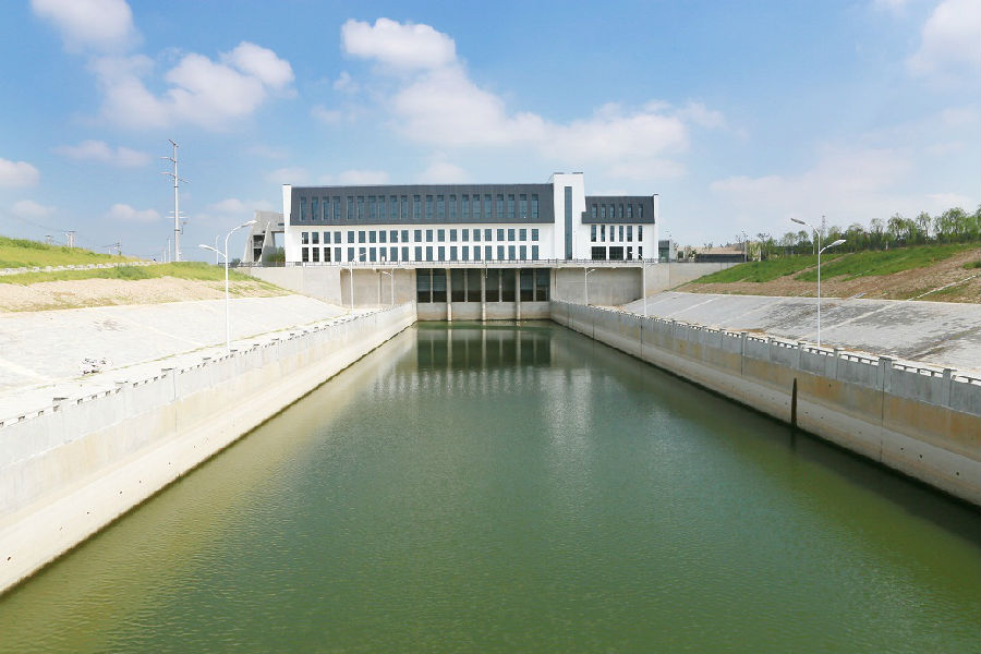 新建的睢寧二站工程主要建設內容為:新建泵站一座,設計流量60立方米每秒,安裝立式導葉式混流泵4臺套(含1臺套備機),單機設計流量20.0立方米每秒,配套電機功率3000千瓦,總裝機功率12000千瓦;開挖上下游引河,新建站下清污機橋、進場交通道路(長約2.0千米)、跨徐沙河進場交通橋(橋寬7.0+2×0.5、橋跨1×50米+2×28.5米鋼筋混凝土連續箱梁、灌注樁基礎)、管理設施以及睢寧一站變電、清污機設施改建等。工程于2011年3月開工建設。